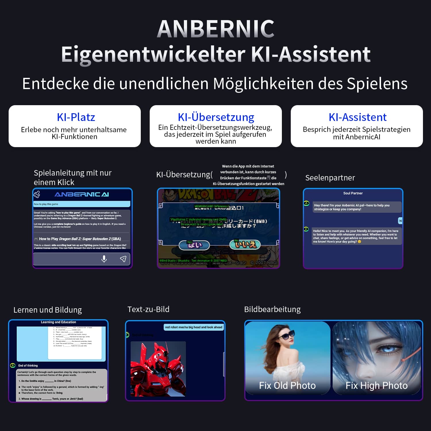 | KI | Ein-Klick-Spielanleitungen, Echtzeitübersetzung, Intelligenter Dialog, Text-zu-Bild-Generierung, Bildbearbeitung und viele weitere Funktionen. |